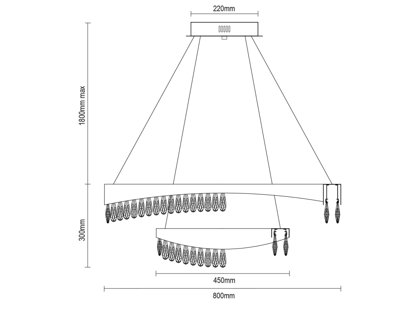AURORA závesný krištáľový luster 800+450 - V30078