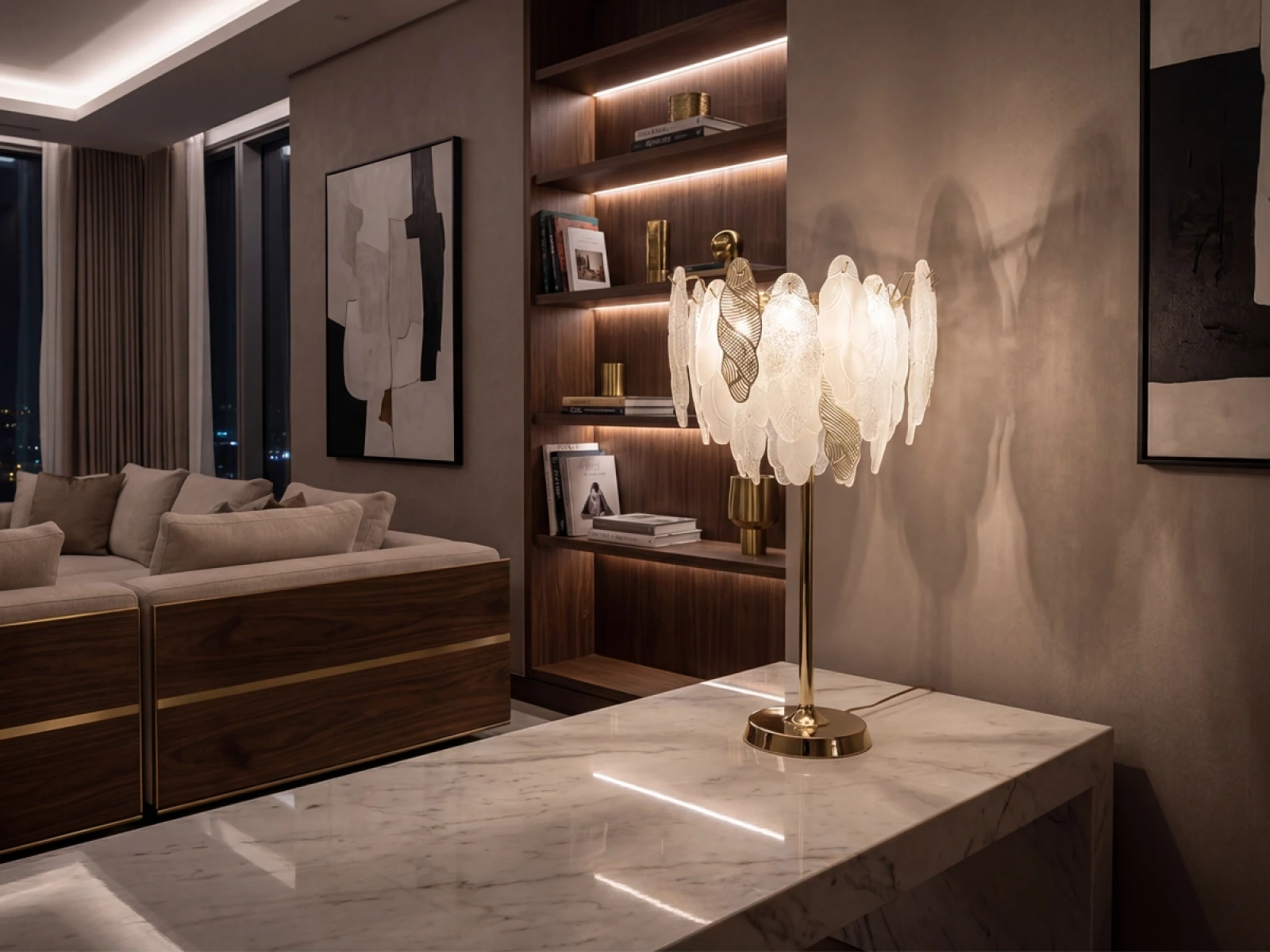 Stolné svietidlo série CHOREO značky VIZARDI predstavuje elegantné dizajnové osvetlenie s výrazným dekoratívnym charakterom. Precízne usporiadanie jednotlivých prvkov vytvára harmonickú kompozíciu s jedinečným svetelným efektom a dodáva priestoru výrazný vizuálny akcent. Svietidlo je vhodné do obývačky, jedálne, spálne aj reprezentatívnych interiérov.