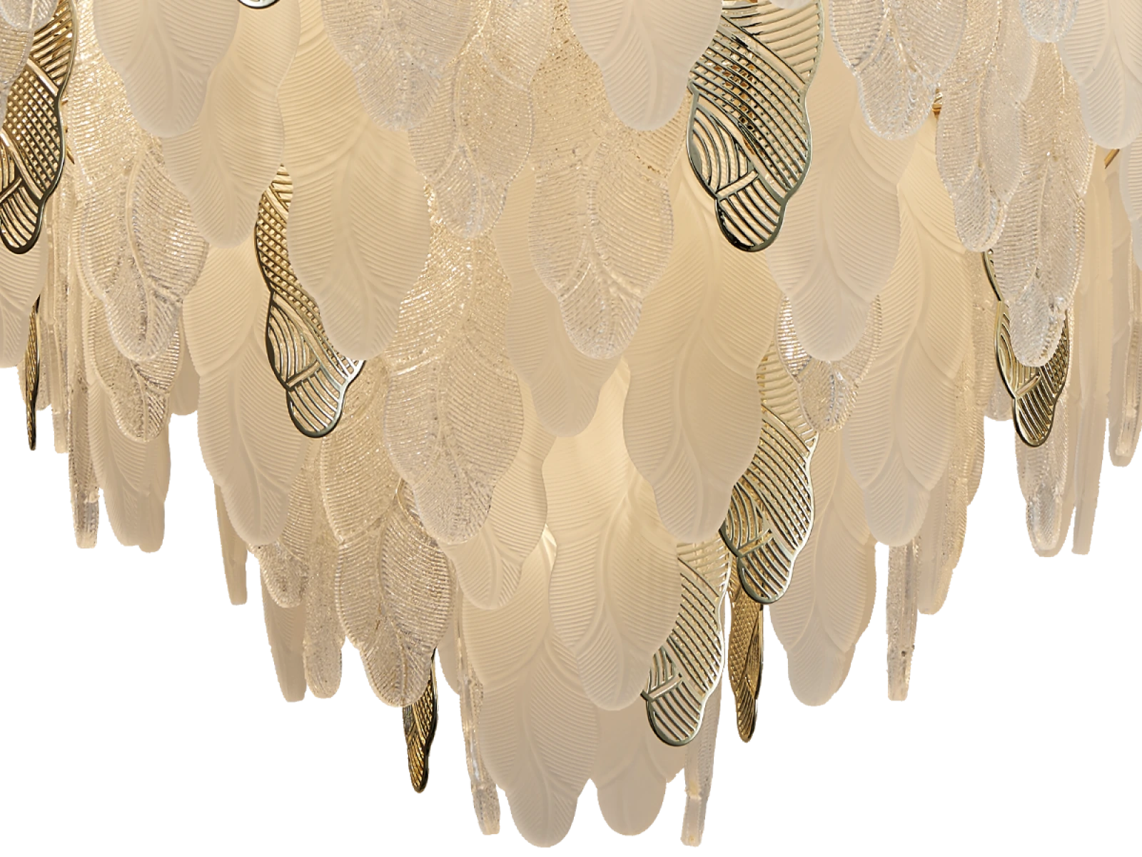 Jemná štruktúra sklenených prvkov v kombinácii s dekoratívnymi kovovými detailmi podčiarkuje luxusný a sofistikovaný charakter tejto kolekcie.