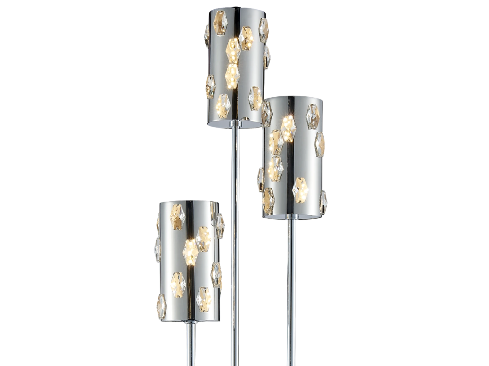 Svietidlo je vyrobené z vysokokvalitného nerezového kovu s chrómovou povrchovou úpravou, doplnené o precízne brúsené kryštály, ktoré umocňujú odraz a lom svetla. Použitá technológia spracovania zabezpečuje dlhodobú stabilitu materiálu a zachovanie jeho estetického vzhľadu.
