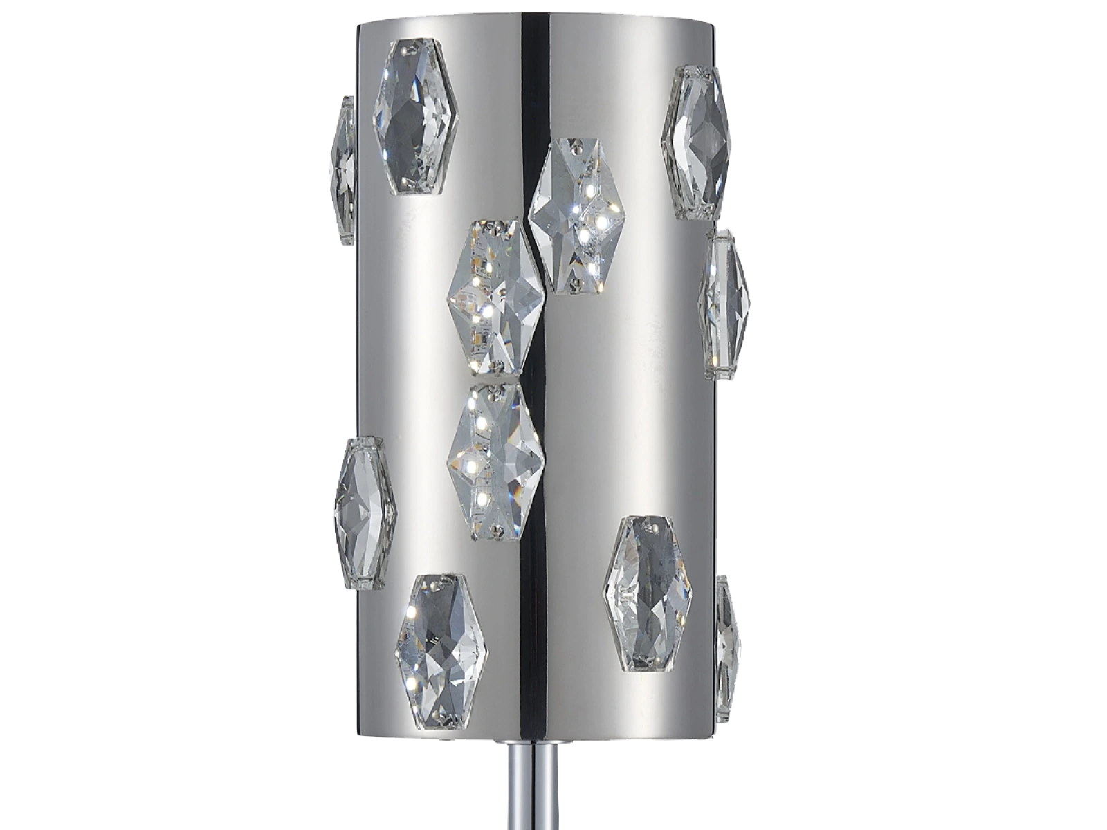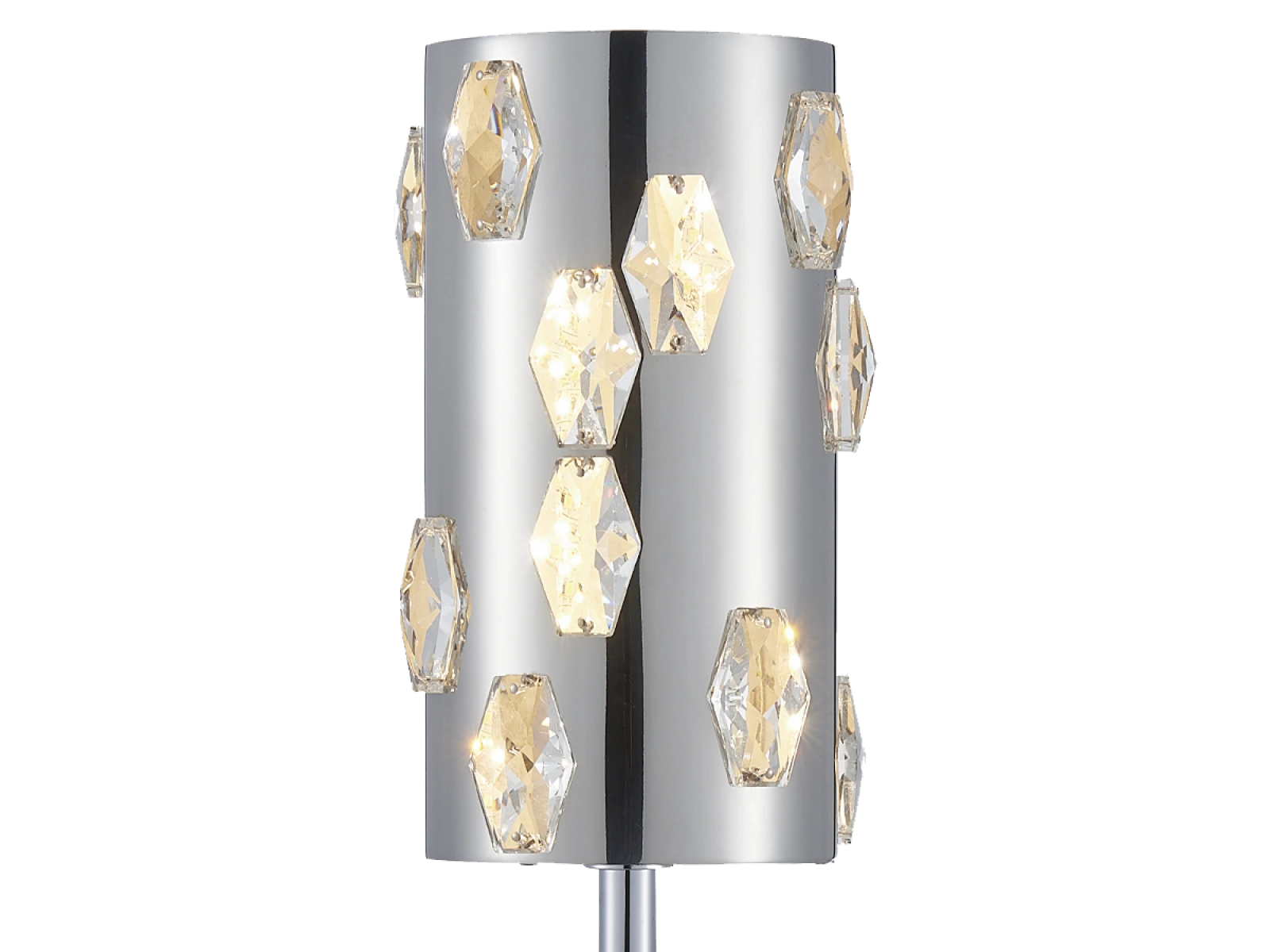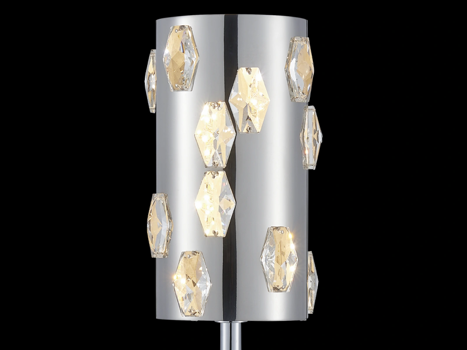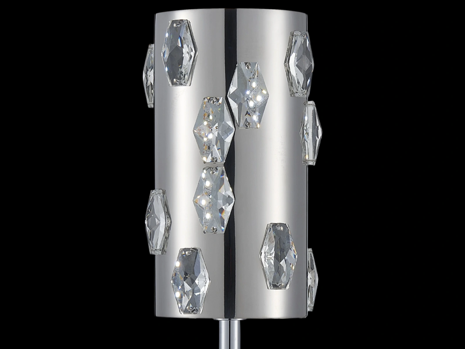 Svietidlo je vyrobené z vysokokvalitného nerezového kovu s chrómovou povrchovou úpravou, doplnené o precízne brúsené kryštály, ktoré umocňujú odraz a lom svetla. Použitá technológia spracovania zabezpečuje dlhodobú stabilitu materiálu a zachovanie jeho estetického vzhľadu.