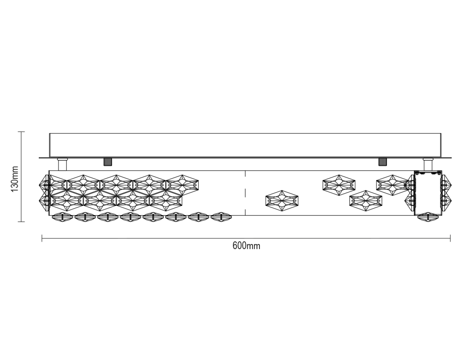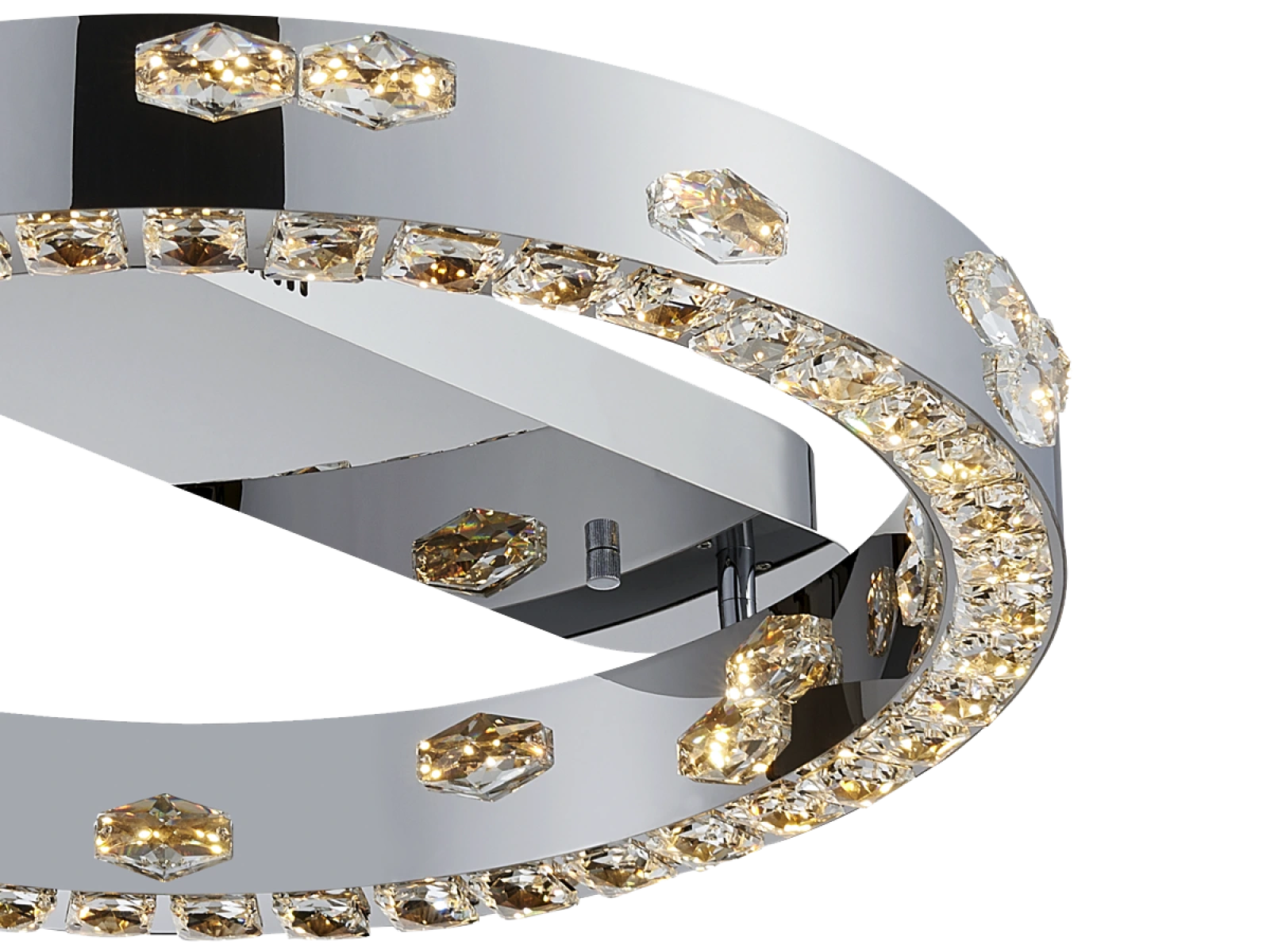 Svietidlo je vyrobené z vysokokvalitného nerezového kovu s chrómovou povrchovou úpravou, doplnené o precízne brúsené kryštály, ktoré umocňujú odraz a lom svetla. Použitá technológia spracovania zabezpečuje dlhodobú stabilitu materiálu a zachovanie jeho estetického vzhľadu.