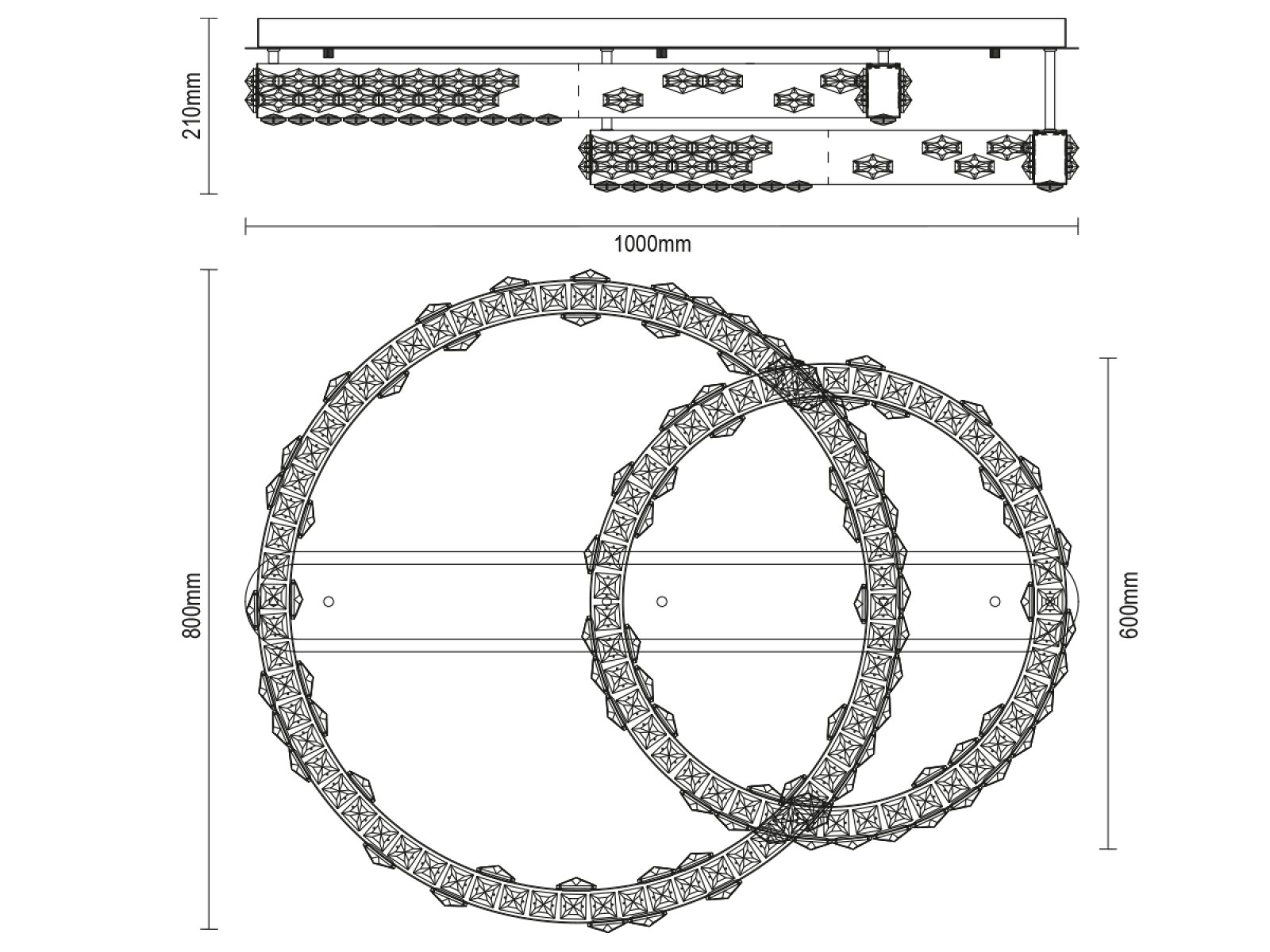 CLARIS stropný krištáľový luster 800+600 - V30009