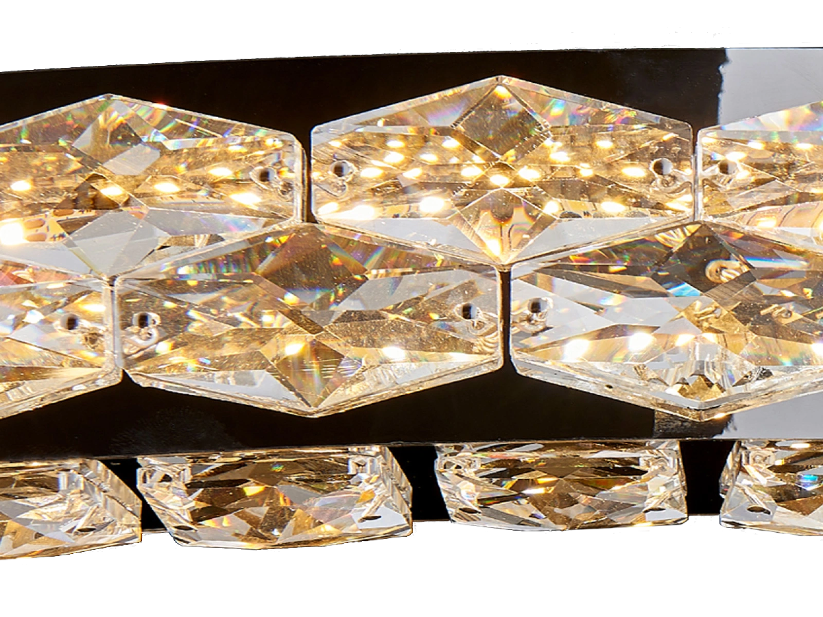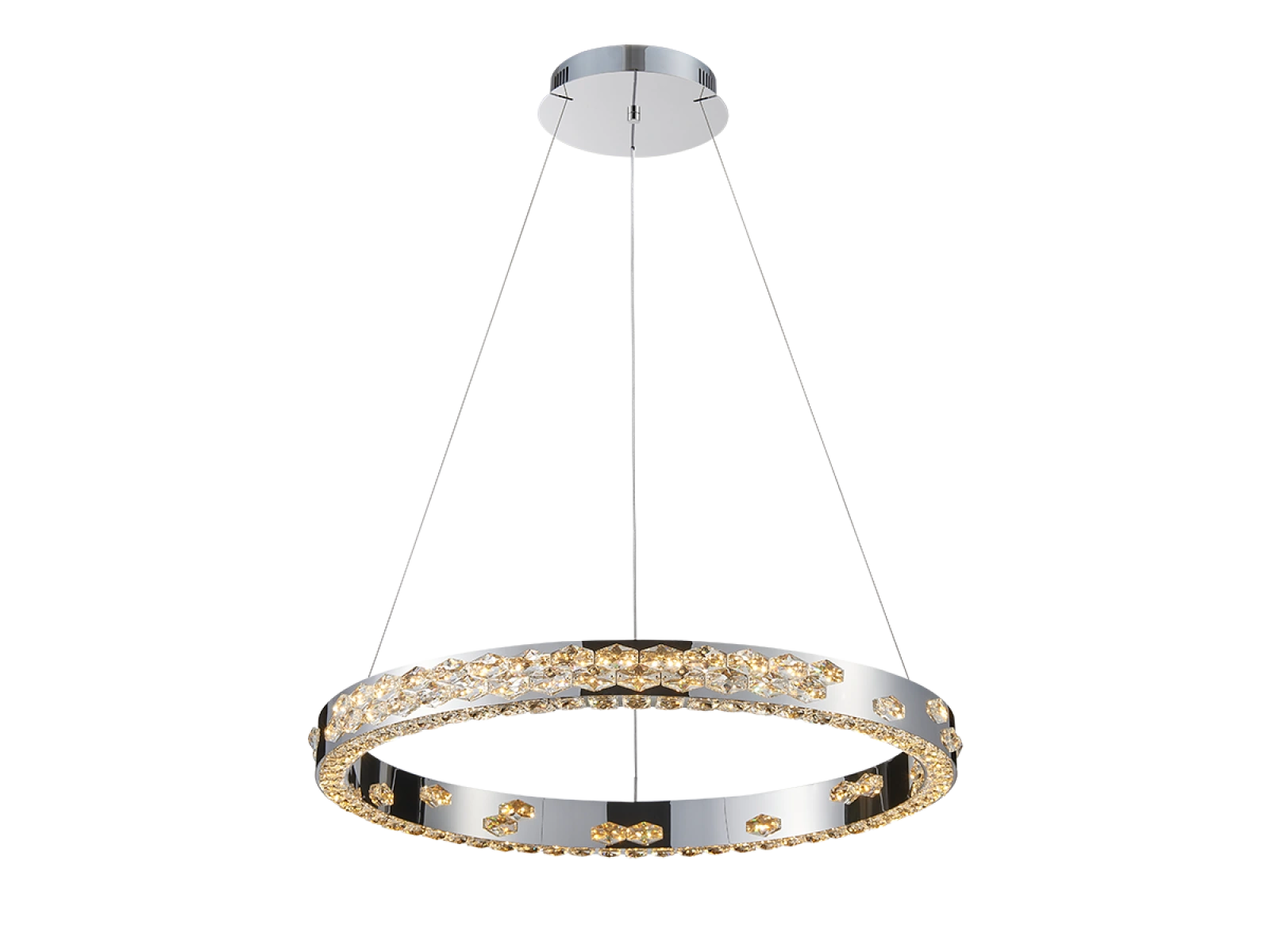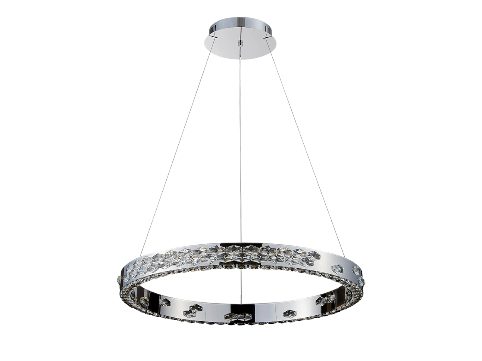 Svietidlo je vyrobené z vysokokvalitného nerezového kovu s chrómovou povrchovou úpravou, doplnené o precízne brúsené kryštály, ktoré umocňujú odraz a lom svetla. Použitá technológia spracovania zabezpečuje dlhodobú stabilitu materiálu a zachovanie jeho estetického vzhľadu.