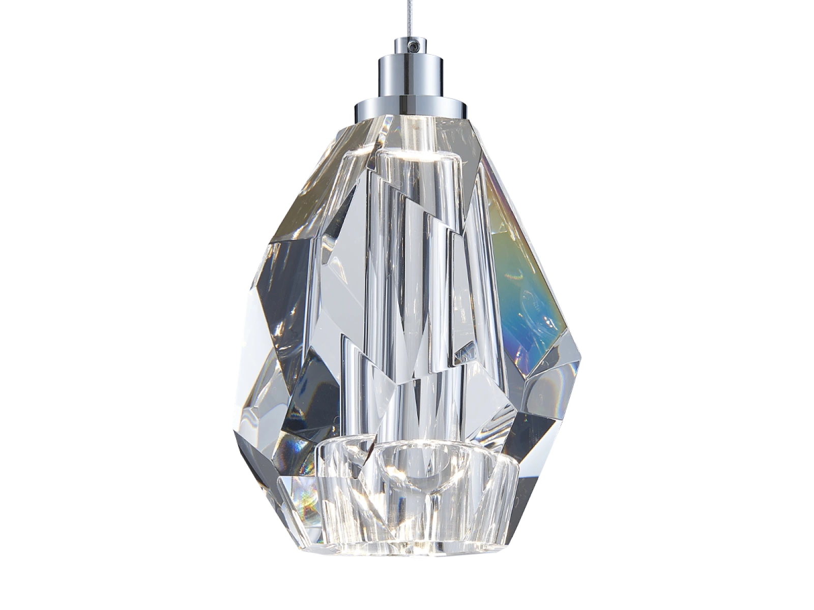 Konštrukcia svietidla je vyrobená z kvalitnej ocele s chrómovou povrchovou úpravou a doplnená o precízne brúsené krištáľové prvky s diamantovou štruktúrou. Tá vytvára jedinečný svetelný efekt a luxusný lesk v priestore.