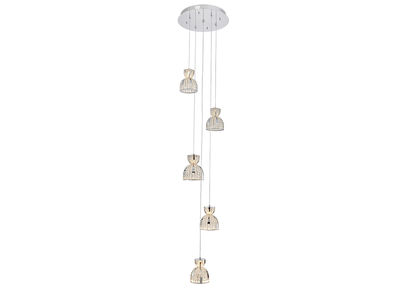 LED závesné svietidlo značky VIZARDI zo série KATRIA zaujme elegantným tvarom a luxusným dizajnom s bohatými kryštálovými detailmi, ktoré vytvárajú pôsobivé svetelné efekty. Jemne tvarované tienidlo v kombinácii s lesklým chrómovým prevedením dodáva svietidlu nadčasový a reprezentatívny vzhľad.