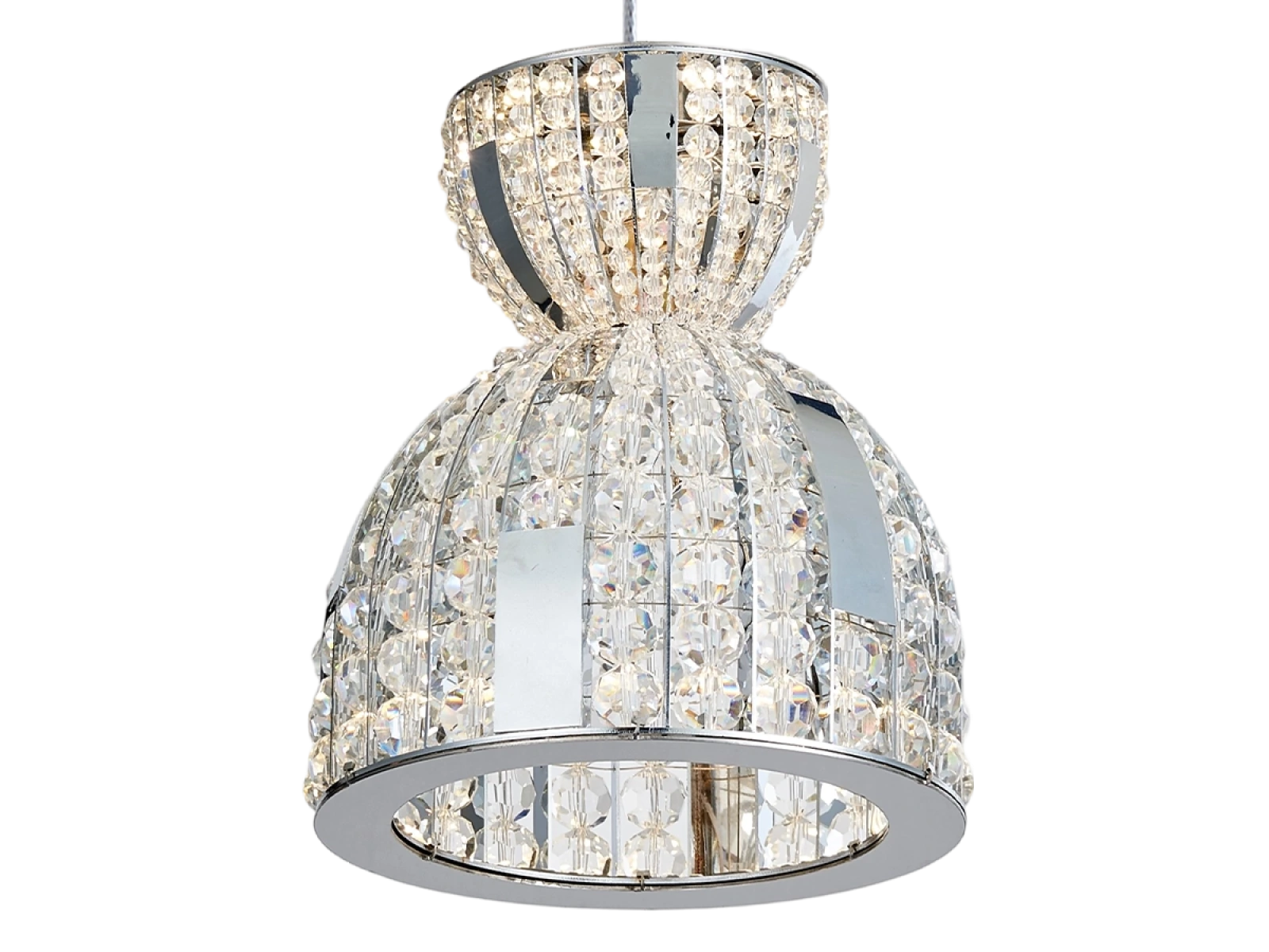 Konštrukcia je vyrobená z nehrdzavejúcej ocele a doplnená o brúsené kryštály, ktoré zabezpečujú intenzívny lom a odraz svetla. Vďaka kvalitnému spracovaniu si svietidlo zachováva svoj estetický vzhľad a stabilitu aj pri dlhodobom používaní.