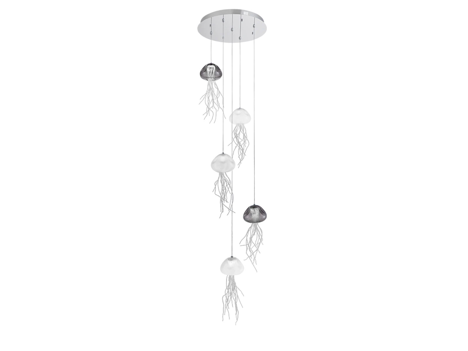 Konštrukcia je vyrobená z kvalitnej ocele a doplnená o sklenené a kryštálové prvky, ktoré zabezpečujú jemný lom a efektný odraz svetla. Vďaka precíznemu spracovaniu si svietidlo zachováva svoj luxusný vzhľad, stabilitu a spoľahlivosť aj pri dlhodobom používaní.